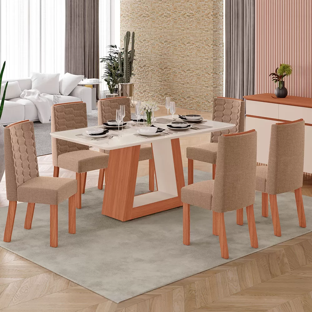 O Conjunto Mesa Heloize e Cadeira Coral, vai agregar elegância e modernidade a sua sala de jantar. 100% MDF, possui um acabamento em pintura U.V. touch com 07 camadas de proteção que proporcionam mais resistência e durabilidade ao produto. Também 100% MDF, a cadeira Coral possui revestimento macio e agradável no encosto e assento confeccionados com espuma na densidade D23, garantindo um maior conforto.